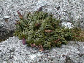 山頂付近の岩の隙間に生える。高さ7〜15cm。
