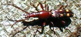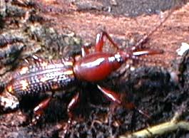 体長20mm。暖地の倒木上、樹皮下に生息する。写真はウラジロエノキの倒木上。雌では吻が長くのびる。