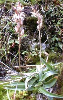 草原に生える多年草。根茎は短く、葉は全て根出葉でロゼット状になり、長さ10〜20cm、幅1〜4cmで無毛。花茎は高さ20〜40cmで分岐することもある。細長い総状花序に多数の花を付ける。