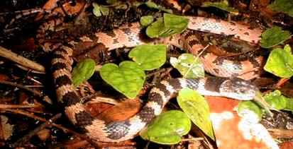 背面は淡褐色で、50〜60個の黒褐色の横斑がある。夜行性でものかげに潜んでいることが多い。トカゲ類やタカチホヘビなどを食べる。全長30〜70cm。