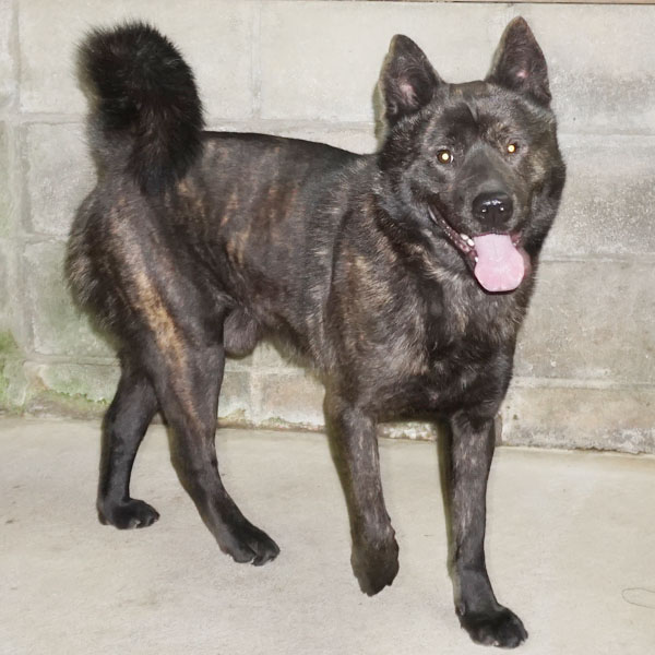 2022年11月7日、熊本県上益城郡山都町生まれ。2023年12月下旬、大分県日田市に移住、猟犬及び家庭犬として大切に育てられている。それなりに警戒心は持っているが比較的友好的。甲斐犬愛護会に登録された生粋の甲斐犬(♂)で国指定天然記念物。「ハオ」と同胎。母の異母兄「周防の海王」は愛護会第155回展成犬牡の部1席、母の父の異母妹「童夢の梅花」は愛護会第148回展壮犬牝の部4席、父の母の異母弟「白鳳乃寅太籠」は愛護会第147回展壮犬牡の部5席、父の母の異母妹「白鳳の華」は愛護会第148回展壮犬牝の部6席、父の父の父の父「神流の天真」は愛護会第127回展総合優良犬優勝、父の母の父の父「白鳳の龍」は愛護会第116回展総合優良犬優勝、父の父の父の同胎「夕霧」は救助犬、父の父の母の父の同胎「雲居の雁(2世)」は東日本大震災に出動した救助犬、その息子「玄(Nuuk)」は日本から初めてフィンランドに行った甲斐犬でフィンランド、デンマーク、ドイツ、エストニア等のドッグショーでチャンピオン歴多数他、近親の賞歴等多数あり。アウトブリーディングで生まれた。GM1ガングリオシドーシスの遺伝子検査結果はクリア。 【犬名】血統登録名=紫苑(しおん) 呼び名=しおん 【毛色】黒虎毛(黒約7割、茶約3割) 【肩高】58cm 【体重】約23.5kg 【尾型】登録は差尾だが現状は巻尾 【嗜好】ドッグフード、猪肉、鹿肉 【犬籍登録・所属団体】甲斐犬愛護会 |