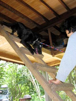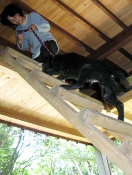 リードで誘導しながら![]() 角度60°の梯子の上り下り訓練 |