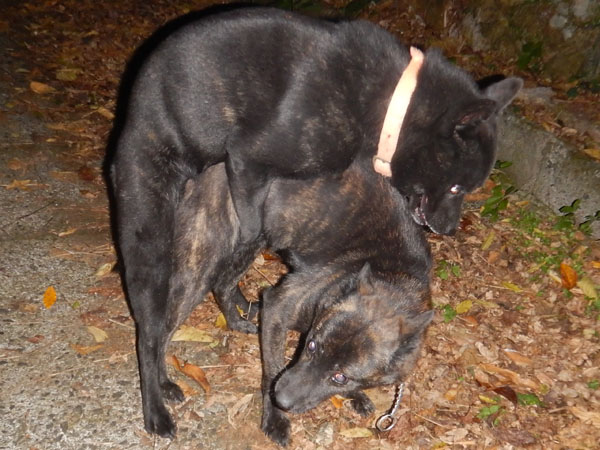 赤石の羅茂(左)と倭(右)の交配(08:24〜08:38)