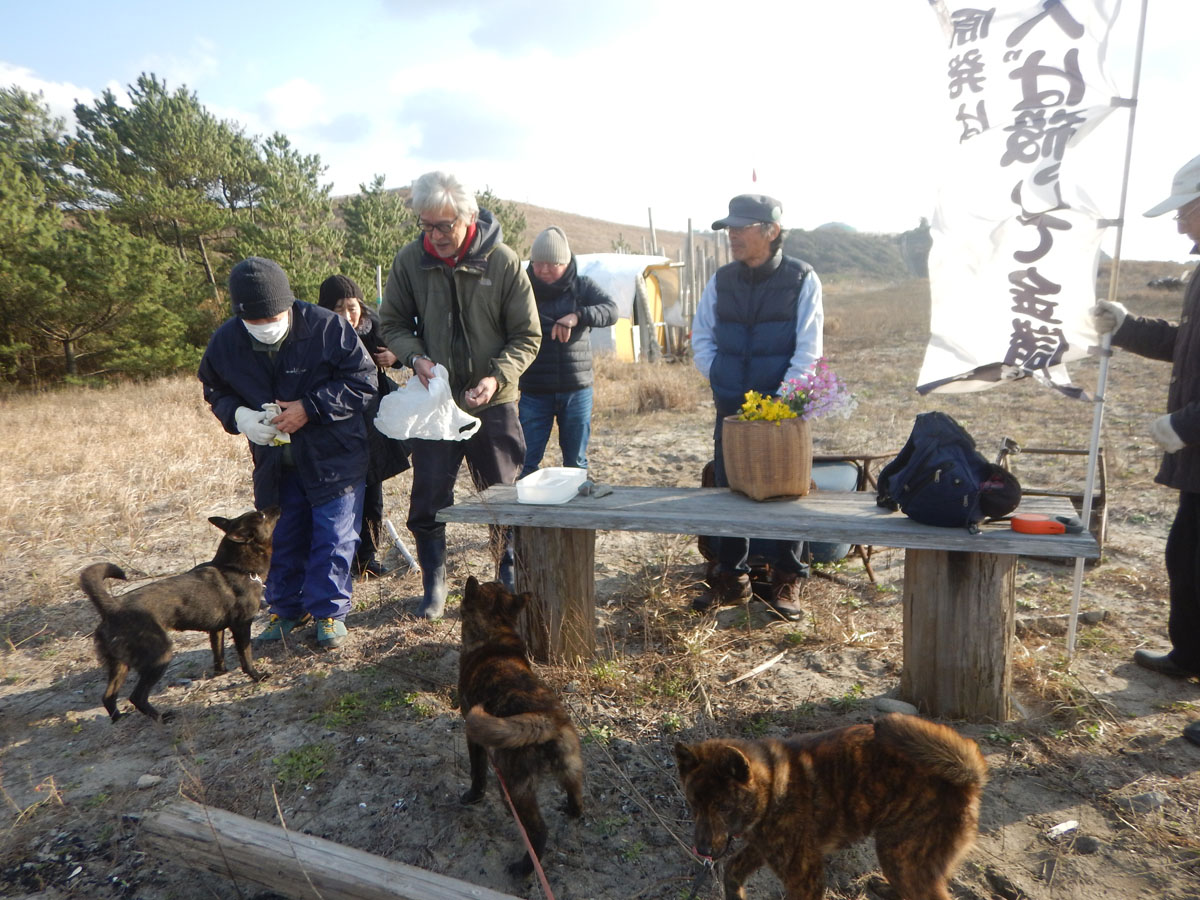 散骨式に参加する、左から祚是、妥蔵、卓廚