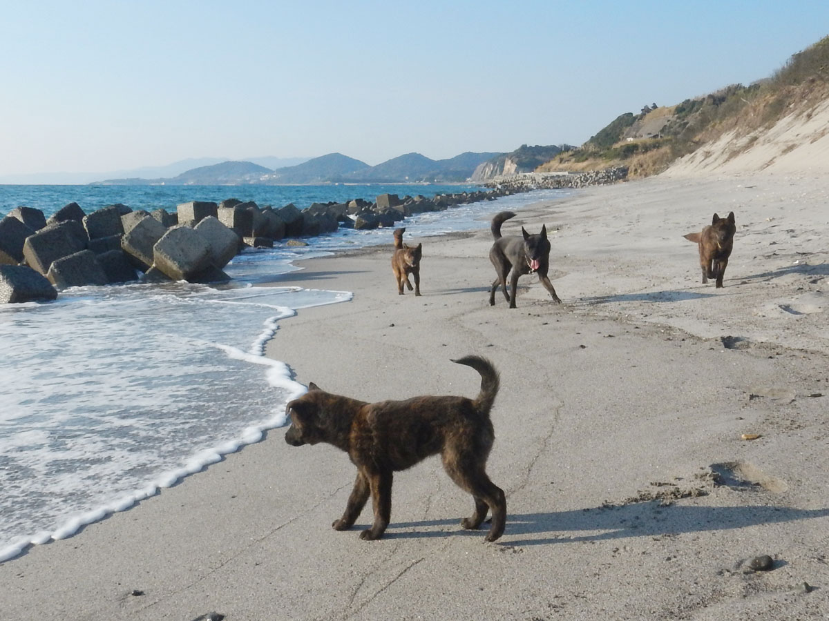 吹上浜で活発に遊ぶ祚是、明媚汞狼(Kamu)、卓廚、妥蔵