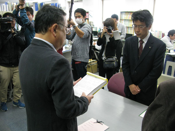 | 2016年12月7日(鹿児島県庁原子力安全対策課) Change.orgキャンペーンで集まった署名とコメントを三反園知事に提出 ![]() |