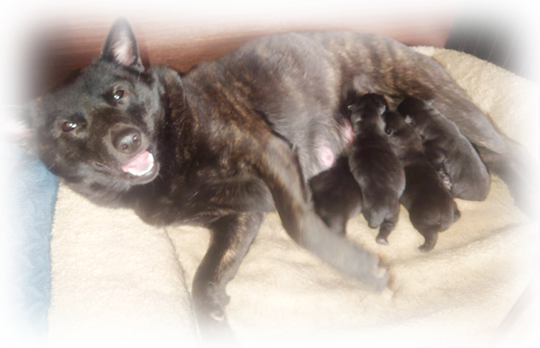 2026年1月17日、「大隅国乃皐月(呼び名=さつき)」が仔犬を出産しました。黒虎毛♀4頭です。毛色は成長と共に変化しますので、現在の所見からの予想です。血統登録は甲斐犬愛護会となります。大隅国乃皐月は比較的友好的で、猟犬としても優れた素質を持つ犬で、その母の母「祈磨」は救助犬として訓練中、母の父の母「高竜乃朧月夜」、母の父の父「夕霧」も救助犬、母の母の母の母「雲居の雁(2世)」は東日本大震災による被災者捜索に出動した救助犬、その息子「玄(Nuuk)」は日本から初めてフィンランドに行った甲斐犬でフィンランド、デンマーク、ドイツ、エストニア等のドッグショーでチャンピオン歴多数、父の母の父「黒龍神」は愛護会第153回展総合優良犬優勝、父の父の母「甲斐の虎姫」は愛護会第140回展総合優良犬準優勝、仔犬たちの父「大隅国乃熊助(呼び名=くますけ)」は和歌山県有田郡有田川町の生まれで、その母の母の母「播磨の琴姫」は愛護会第136回展成犬牝の部2席、母の母の父「千太狼」は愛護会第145回展未成犬牡の部3席、父の母の父「国分の勝宗」は愛護会第145回展成犬牡の部5席他、両親とも近親の賞歴等が多数あり、甲斐犬本来の優れた資質を持つ優良な血統です。今回は共通祖先の優良な形質を伝えるため、意図的にインブリーディング(近交係数約4.6387%)をしましたが、母「大隅国乃皐月」は近交係数約1.2207%、父「大隅国乃熊助」は近交係数約0.5341%のラインブリーディングなので連続したインブリーディングではありませんし、両親ともGM1ガングリオシドーシスの遺伝子検査結果はクリアです。 |