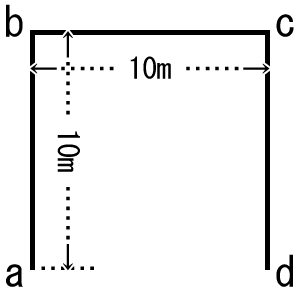 この作業は全て犬にリードをつけた状態で行う。審査員の指示により、指導手は犬を脚側停座させて犬名、指導手名を申告する。審査員の指示により、指導手は犬とともにa地点に行ってb方向を向いて犬を脚側停座させ、審査員の指示により犬とともに常歩でa→b→c→dと脚側行進し、dまで来たら回れ右をして速歩でd→c→b→aと脚側行進し、再度回れ右をして犬を脚側停座させる。